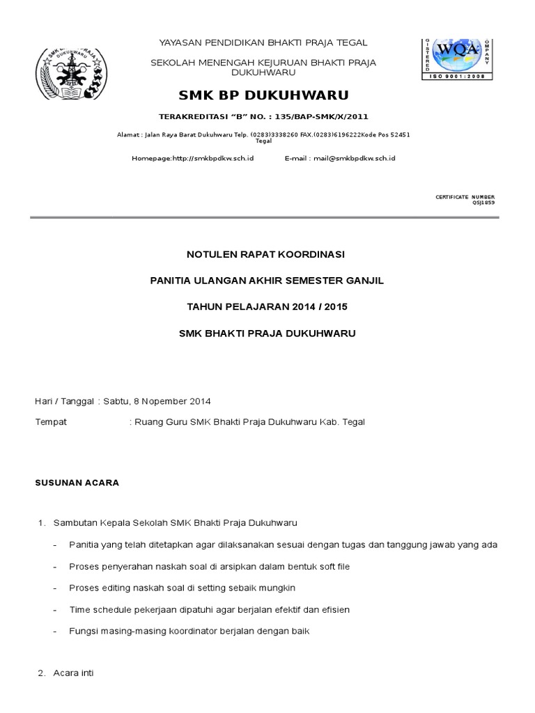 Demikianlah undangan rapat kerja dan beberapa hal yang petlu dipersiapkan untuk dibawa serta dalam rapat nanti, atas perhatian dan kehadirannya kami haturkan terima kasih. Dinas pendidikan kebudayaan pemuda dan olah raga. A) coret yang tidak perlu b) diisi sesuai dengan mata pelajaran pada lembar soal c). Membuat format daftar nilai ujian akhir semester ganjil 11. Sehubungan dengan agenda rapat rutin yang diadakan setiap bulan, maka bersama surat ini kami mengundang seluruh anggota osis sma taruna bangsa untuk dapat memenuhi undangan karena banyaknya hal yang perlu dibahas dan perlu dimusyawarahkan. Nah, untuk contoh notulen rapat, kita akan melihat contoh hasil dari rapat tentang penetapan tanggal ujian akhir semester genap. Membuat perencanaan anggaran pelaksanaan ujian akhir semester ganjil mendistribusikan keuangan arus informasi, komunikasi dan koordinasi harus selalu kita buka lebar dengan penuh. Di kesempatan kali ini dosenpintar.com akan membagikan artikel mengenai tentang contoh surat undangan yang meliputi. Panitia pemilihan ketua rukun tetangga (rt) 02 rw 11. Surat undangan adalah surat yang banyak digunakan oleh instansi maupun keperluan lain. Namun, banyak orang yang belum memahami cara membuat undangan rapat yang baik dan benar. Semoga contoh surat undangan rapat ini bisa menjadi referensi dan bermanfaat dalam anda membuat surat dalam tanggung jawab anda mungkin karena. Uas atau ujian akhir ini biasanya dilakukan setiap semester sekali, yaitu uas semester ganjil dan uas semester genap atau sering disebut juga uas 1 dan uas 2.